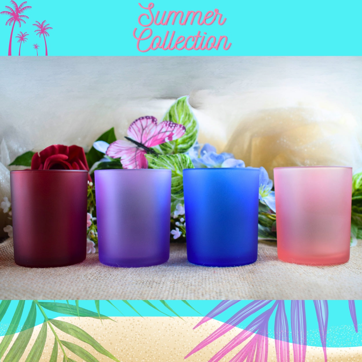 Estos vibrantes y frescos vasos de vidrio son ideales para tus velas más veraniegas y coloridas. Su material translúcido creará un efecto precioso con la llama encendida.